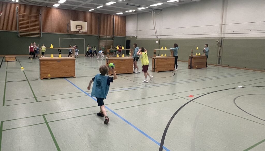 In der Stunde werden verschiedene Sportarten aus dem Camp ausprobiert.